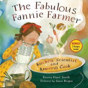 Fannie Farmer loved cooking as a child. When she lost the use of her leg as a teenager due to polio, her love of cooking helped reshape her vision for the future; while she recovered, she cooked. Fannie noticed that the imprecise instructions and measurements in most recipes in the late 19th and early 20th centuries (e.g., “a suspicion of nutmeg”) made for inconsistent results. She enrolled in the Boston Cooking School and stayed on after graduation, eventually becoming principal. She not only led the school, but she also led the charge for using exact measurements and providing precise instructions in recipes. She showcased the results when she rewrote the school cookbook, which became a hit with the general public. This spirited recounting of the accomplishments of this food pioneer concludes with terrific end matter, beginning with a note about research and conjecture vs. fact in the narrative before exploring many dimensions of Fannie’s life, work, legacy, and the times in which she lived. A design that highlights quotes from Fannie throughout as well as pleasing watercolor and digital illustrations round out this winning picture book biography. ©2024 Cooperative Children’s Book Center